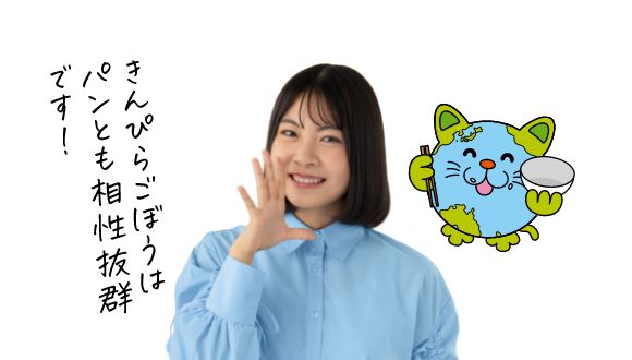 - ③1に2ときんぴらごぼう、スライスチーズを挟む。